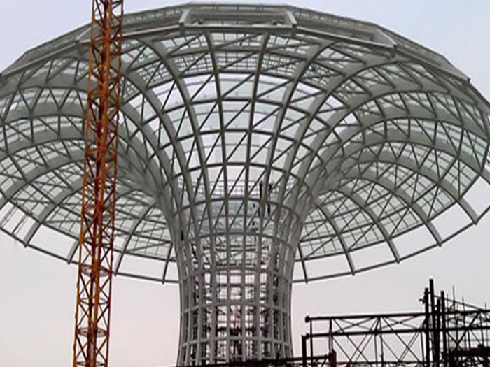 二、球形网架结构因其结构新颖,受力合理,自重轻、用钢量低等优点。如大型体育场馆球形武威螺栓球网架、公共场馆球形网架、电厂武威螺栓球网架、水泥工业球形网架、仓储物流球形网架、武威干煤棚工业球形网架、武威收费站武威加油站球形网架、展览中心、影剧院、商场、航站楼、候车厅、工厂武威车间、仓库、电视塔等球形螺栓球节点网架。国内球形网架结构主要分为:武威焊接球节点网架及螺栓球节点网架两种。螺栓球节点网架其构件工厂内加工量较大,现场安装便捷,适用于现场工期紧,武威施工条件、用电量受制约,网架形状复杂、武威杆件定位困难的异形结构。螺栓球节点球形网架系统基本由武威杆件、螺栓球、支撑支座等组成。按照节点形式可分为交叉武威桁架体系、四角锥体系、三角锥体系等。支撑方式多为固定支座支撑。对于大面积、大跨度及有特殊受力或伸缩要求的网架结构可采用橡胶支座、滑移支座、球铰支座等支撑形式,以满足结构自身的受力稳定、均衡,便于内力释放等设计要求。